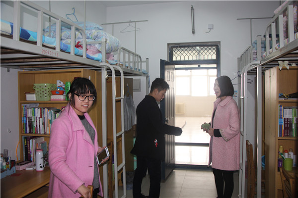 在走访学生寝室时,辅导员一方面饶有兴趣地听取了同学们在寒假参与社会实践的见闻,热心询问同学们假期的生活情况,并帮助同学们一起分析过去一学期在学习和生活上出现的问题,倡导大家认真总结与反思,及时作出调整和改进;另一方面,辅导员还对学生进行了新学期安全教育,提醒学生要遵守学校宿舍管理制度,杜绝安全隐患,提高安全意识。辅导员的到来给同学们新学期的学习和生活增加了动力和信心,在和辅导员交流的过程中,同学们也逐渐明晰了自己本学期的目标和方向。