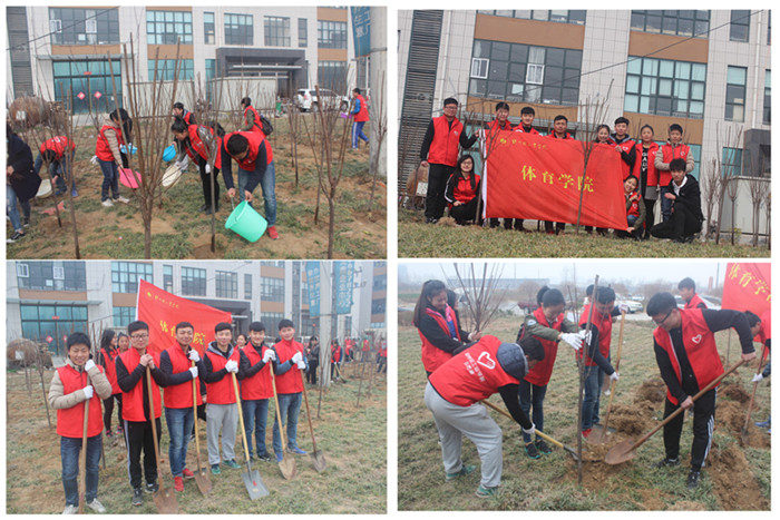 春回大地,万物复苏,为了唤起同学们爱护生态环境、珍惜森林、美化家园的意识,体育学院积极组织同学参加了由校团委组织的义务植树活动。