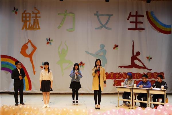 本次魅力女生大赛采用选拔机制,共17各班级参加,经过初赛严格的选拔,共有九支队伍进入决赛。晚上7:00,“魅力女生”总决赛准时开始。活力四射的开场舞蹈《短发》拉开了此次大赛的序幕。在班级风采展示环节,进入决赛的九个班级纷纷以精彩的PPT或视频的形式,向现场观众展现了学院女生独特的魅力和班级积极向上、团结一致的氛围,或温馨动人,或幽默风趣,引得现场掌声不断。接下来的“我型我秀”环节更是精彩纷呈:诙谐幽默的小品《魅力女生》、《道上》、《新上海滩》使人捧腹大笑、热闹非凡;曼妙动听的歌声《一生有你》、《被风吹过的夏天》、《野子》优美独特、让现场观众一饱耳福;酷炫的街舞《Break Down》、《Energy Girl》引爆全场;唯美动人的舞蹈《惊鸿》带人领略古典之美。除此之外,比赛过程中设置现场抽奖环节和微博实时互动,更是创新独特,high翻全场,赢得观众一致好评。