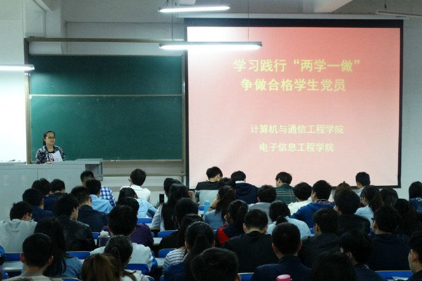 4月15日,计算机与通信工程学院(电子信息工程学院)在计算机楼118开展“两学一做”专题学习教育大会,会议由学生支部书记司丽娜老师主持,学院全体党员、党员发展对象参加了此次会议。