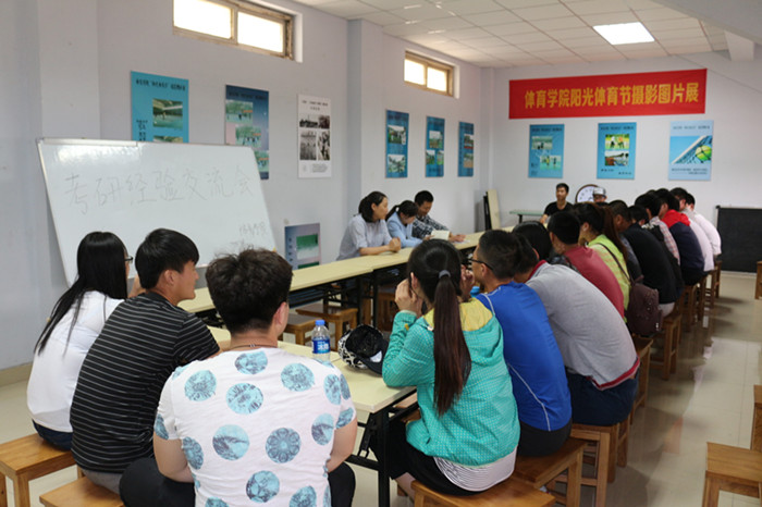 2016年4月15日,体育学院在学生活动中心召开考研经验交流会,体育学院学工部主任李羚玮老师,考上研究生的应届毕业生及低年级有意向考研的学生参加了本次交流会。