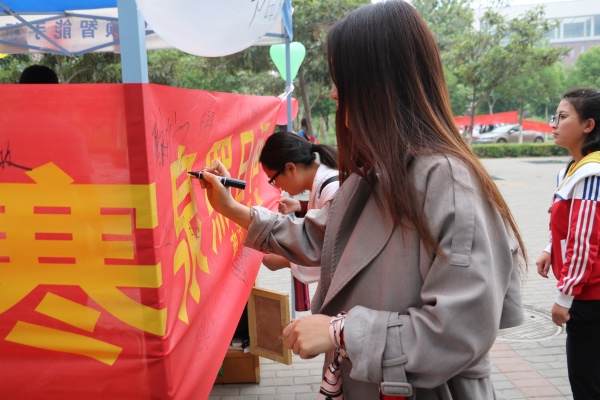 在活动的“真情寄语”环节,同学们一边欣赏着母亲节照片展,一边把心中想对母亲说的的话语和对母亲的祝福写在祝福墙上,活动刚开始不久,祝福墙上就贴满了祝福的话语,表达了同学们在这个特殊节日送给母亲最真挚的祝福。伴随着美妙的音乐,在充满浓浓爱意的氛围中,同学们纷纷在“感恩母亲”的条幅上签字,表达了对母亲的感恩之情。