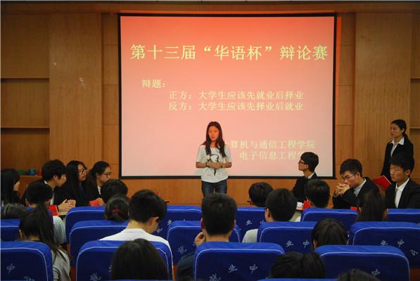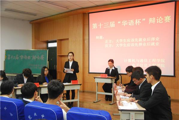 5月20日,计算机与通信工程学院(电子信息工程学院)分别在活动中心113、计算机楼118举行“正学风·聚能量”第十三届“华语杯”辩论赛总决赛。分团委书记沈高峰、学工办主任司丽娜、全体专兼职辅导员以及各班级代表观看此次比赛。