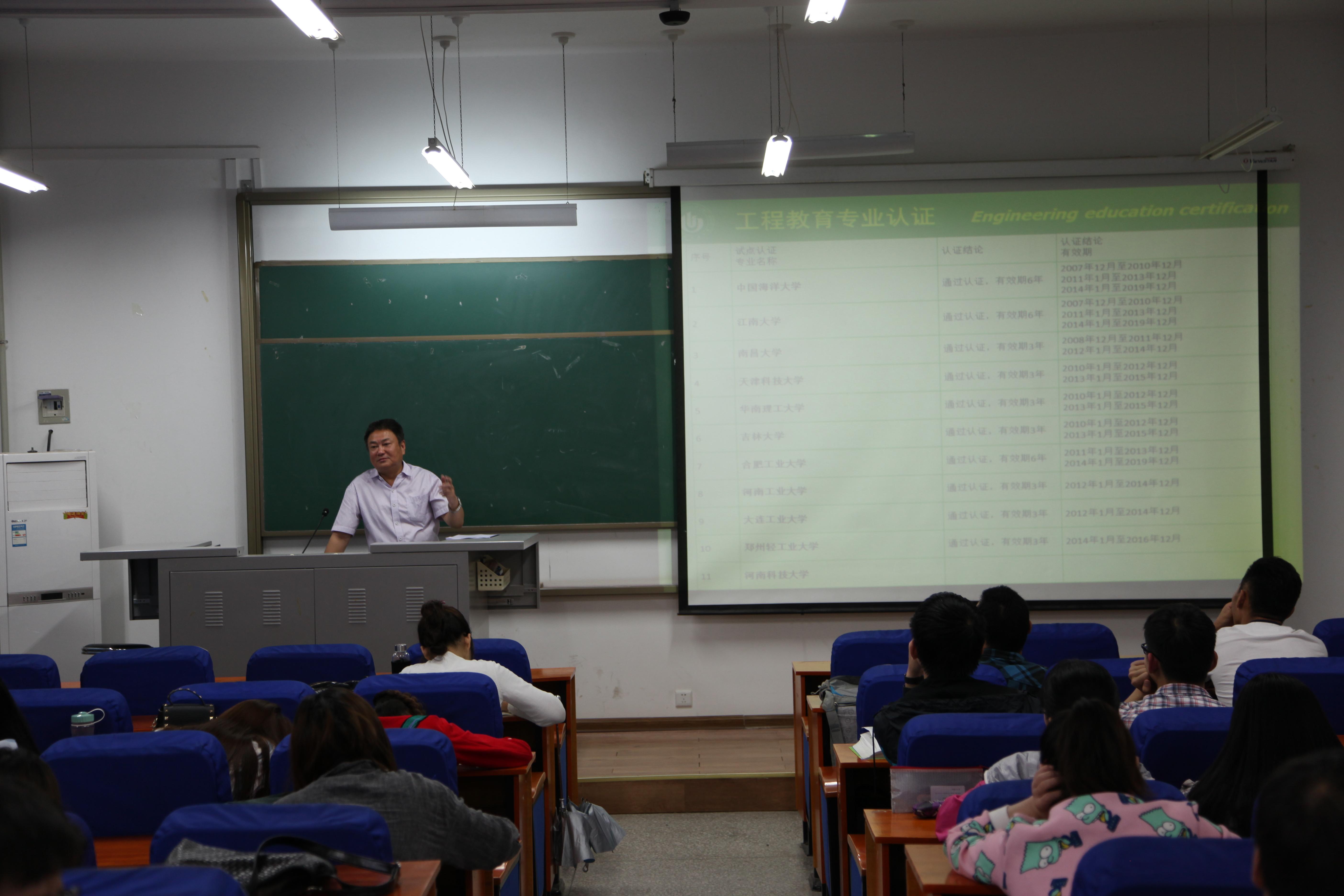 525-27日,学院副院长景建洲分年级召开学生培训会,201520142013级各年级食品科学与工程专业全体学生参加了此次培训会。会上,景院长分别从工程教育专业认证意义、正确理解标准、认证过程、学校基本情况、学生专业认证行动指南等四个方面对学生进行详细的讲解。景院长指出,食品科学与工程专业工程教育认证不仅是我院教师的攻坚任务,更是全体学生的光荣使命,全体学生都应将工程认证工作视为己任,充分学习,认真准备,为我校顺利通过此项认证做出应有的努力。