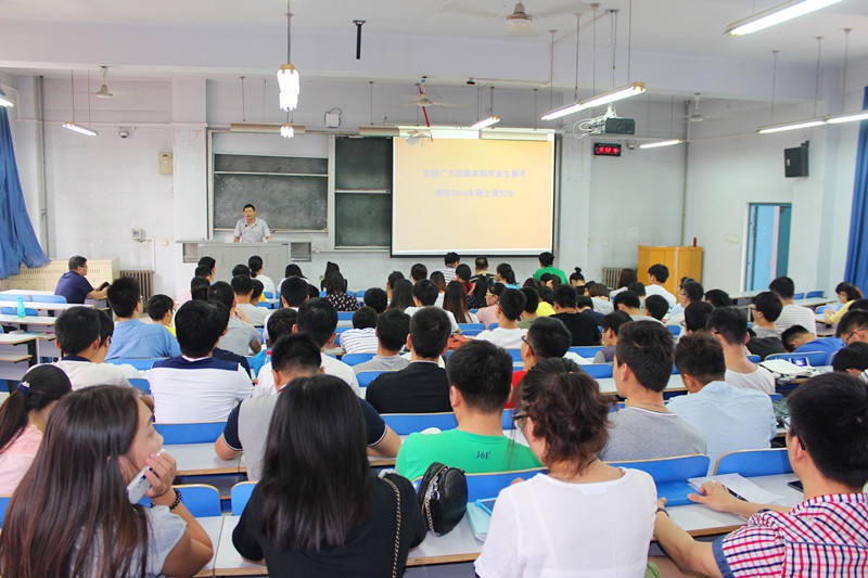 会议首先由副院长辛向军老师为大家做总动员,他提倡有更多的同学去考研。他从考研内容、考研流程、考研目的、考研准备以及考研心态等方面和同学们进行交流,同时也提醒同学们注意一些相关事项,比如考研过程中投简历、面试的注意事项等。接着,教研室主任荣民希老师和关宏波老师先后向同学们介绍了各自所负责专业的考研方向,结合经济社会对人才的需求和自身专业发展的需要,强调了继续深造的必要性,并就是否跨专业考研、报考学校的层次、复习计划的安排、协同备考等给出详细建议。最后,党总支副书记张阳老师向同学们介绍了近几年我院学生考研总体情况,他指出,考研是人才培养的一种方式,考研可以提高同学们的就业竞争力,他鼓励同学们考研、考博,为以后的发展创造更好的条件。