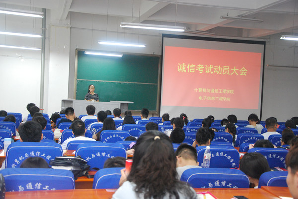 为进一步加强学院学风建设,严肃考风考纪,增强学生的安全防范意识和法制观念,构建和谐校园,计算机与通信工程学院(电子信息工程学院)在期末考试来临之际,通过各年级学风建设主题班会、考风考纪动员会、考风考纪宣传标语、签订诚信考试承诺书等多层次、多形式加强对学生进行考风考纪和安全稳定教育。
