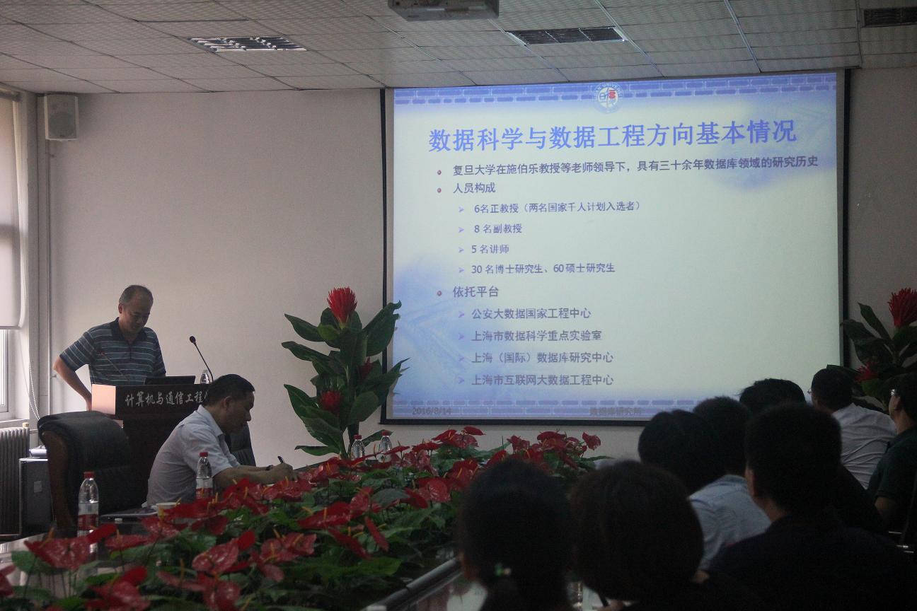 2016年8月14日下午,复旦大学计算机科学技术学院副院长汪卫教授在计算机与通信工程学院做了《数据科学和数据工程》的学术报告。