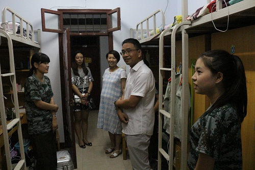 9月8日晚,外国语学院领导老师与辅导员走访新生宿舍,为学生送去问候和关怀。