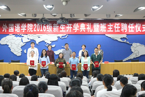 会上,外国语学院举行了2016级新生班主任聘任仪式。在开学伊始,班主任和辅导员“二元”制管理育人模式已贯穿新生管理和入学教育中。
