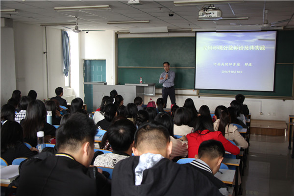 2016年10月10日,下午2点,政法学院邀请河南省高院环境资源庭邹波法官在二教楼714进行环境公益诉讼及其实践讲座。法学系主任潘成林老师、王阁老师及法学专业学生到场参加了此次讲座。