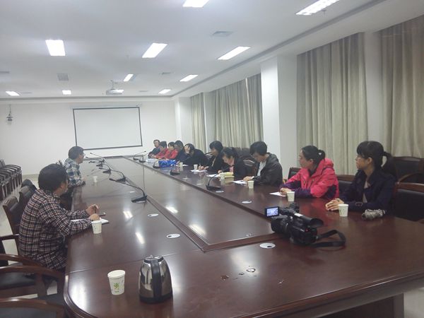 袁道强馆长在逸夫图书馆二楼第一会议室热情接待铁路警官学院王缨军馆长一行。袁道强馆长在座谈会上介绍了图书馆的办馆理念、发展思路以及科学校区逸夫图书馆的建筑结构、功能布局等。