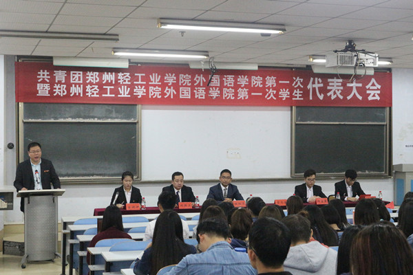 20日下午4时,共青团郑州轻工业学院外国语学院第一次代表大会暨郑州轻工业学院外国语学院第一次学生代表大会在教三楼104隆重举行。校团委副书记景志勇、外国语学院党总支书记杜红亮、分团委书记刘振卫、全体团员代表及学生代表出席会议。会议由学生会副主席台健伊同学主持。
