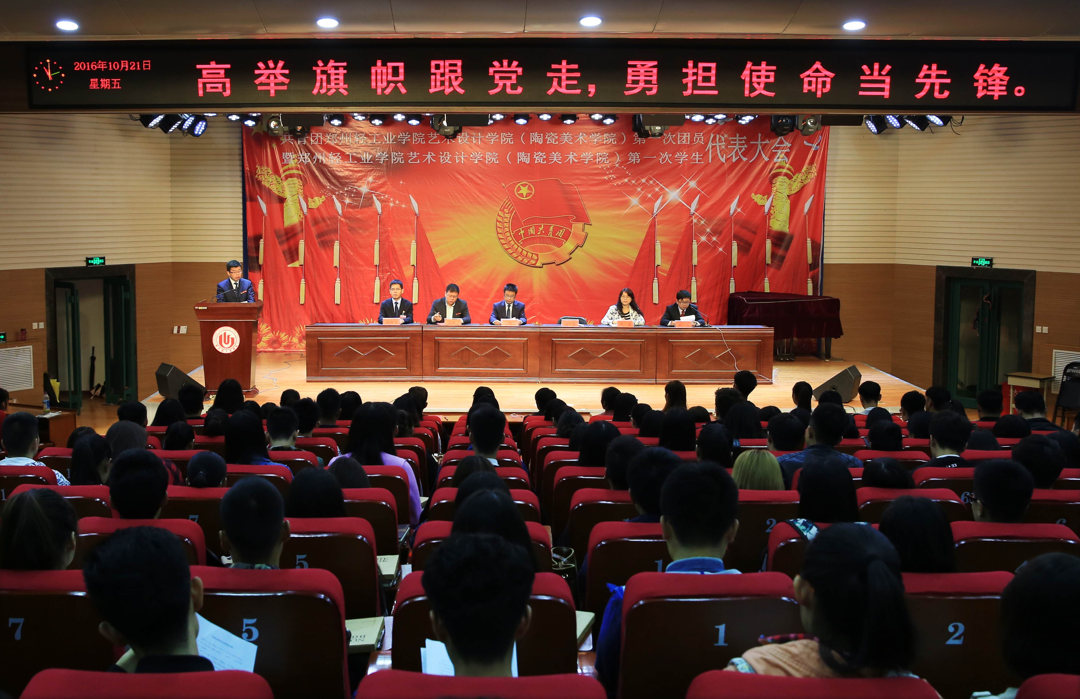 10月21日上午,共青团郑州轻工业学院艺术设计学院(陶瓷美术学院)第一次团员代表大会暨郑州轻工业学院艺术设计学院(陶瓷美术学院)第一次学生代表大会在教一楼演讲厅隆重召开。艺术设计学院(陶瓷美术学院)党总支书记邵元珠老师、校团委书记葛勋老师、艺术设计学院(陶瓷美术学院)党总支副书记张莉老师、校团委副书记景志勇老师、分团委书记任红印老师、专兼职辅导员、全体团学代表、列席代表等200多人出席会议。会议由学工办副主任孙丰主持。