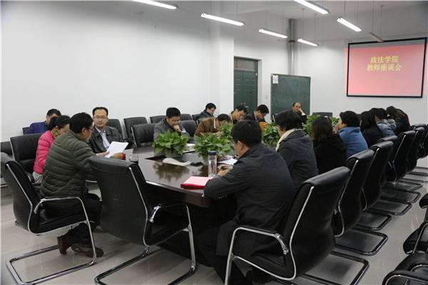 10月27日下午14:30,政法学院在政法楼212召开了教师座谈会。会议由刘春兵院长主持,参会人员包括各专业负责人、骨干教师、近两年新进博士代表、各年级辅导员等。