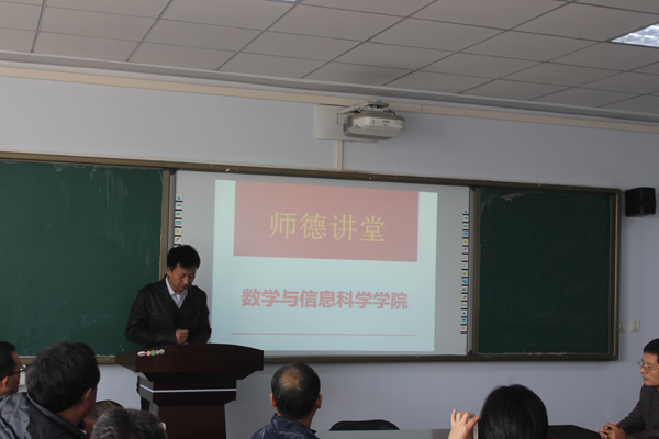 为进一步弘扬高尚师德,传承师德精神,深入推进师德师风建设和精神文明建设,11月3日下午,数学与信息科学学院在东风校区教三楼1000会议室成功举办了以“崇尚师德 教书育人”为主题的“师德讲堂”活动。数学与信息科学学院全体教职工参加了本次活动。此次活动由学院党总支副书记张阳主持。