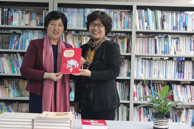 王梅军女士应邀来我校,为进行实训的外国语学院汉语国际教育专业2014级学生培训中国传统文化中的剪纸艺术。本次王梅军女士向外国语学院资料室捐赠了《快乐剪纸中国风》10册、《镂月裁云》10册。这两本著作也是王梅军姐妹俩近年的代表著作。王女士希望通过图书捐赠,能够使更多的学生喜爱剪纸艺术,弘扬中国传统文化。