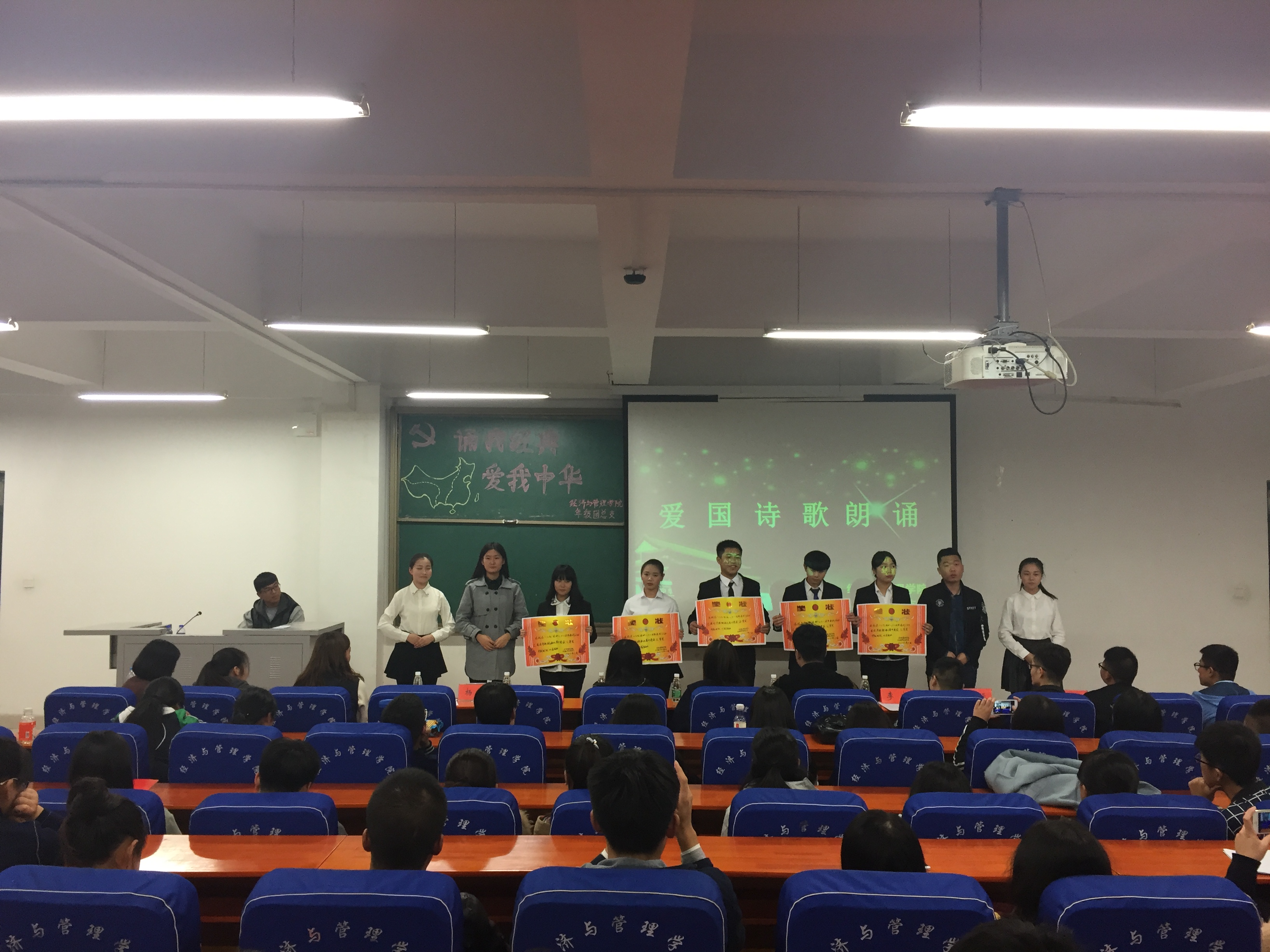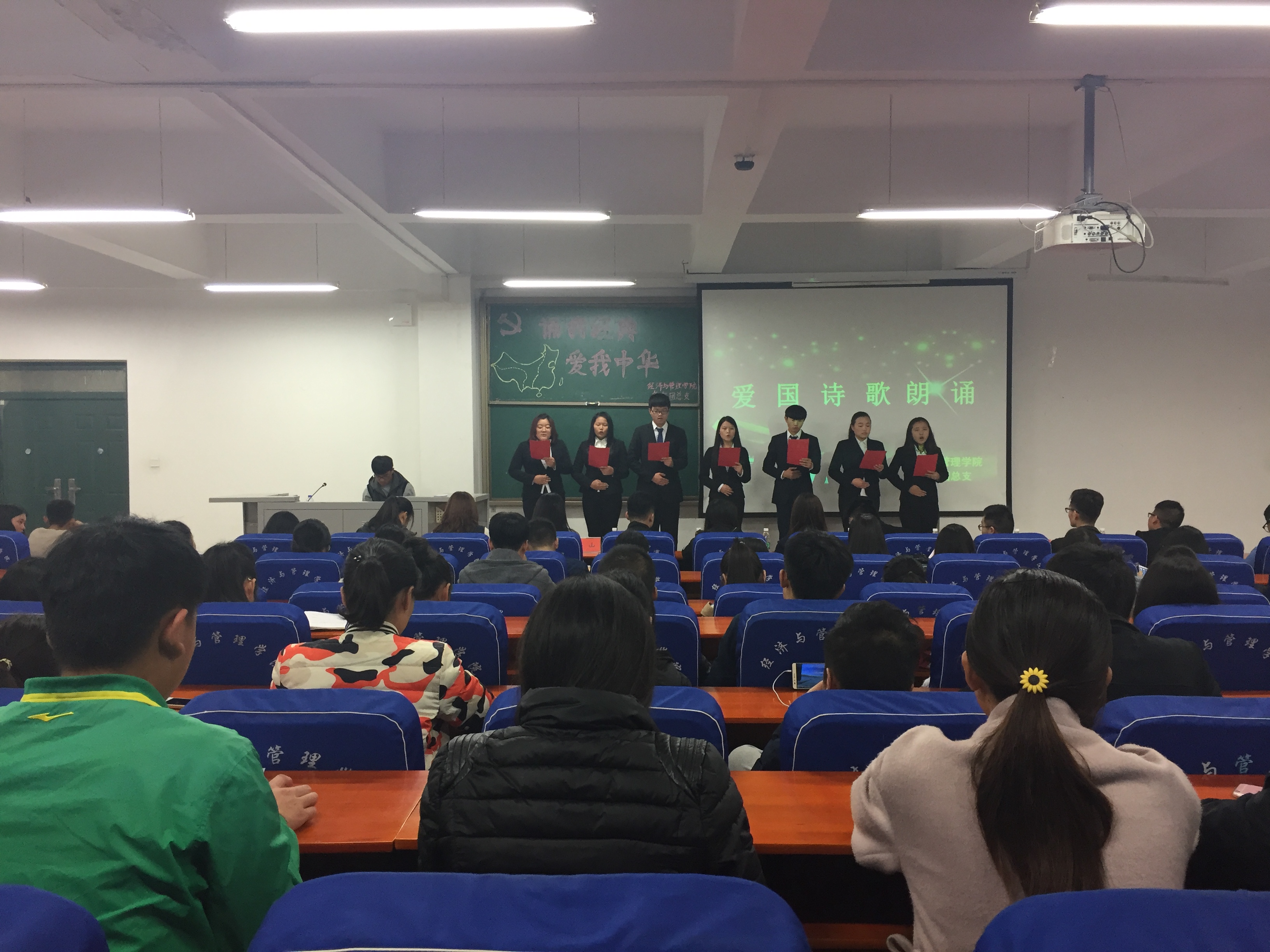 为纪念一二·九运动81周年,发扬民族文化,回顾历史,激发广大学生的爱国热情,展现当代大学生奋发激昂的精神风貌。2016年11月18日晚上19:00,经济与管理学院在经管楼211成功举办了纪念一二·九运动81周年系列活动之爱国诗歌朗诵比赛。16级各班班级代表参加了此次朗诵比赛。