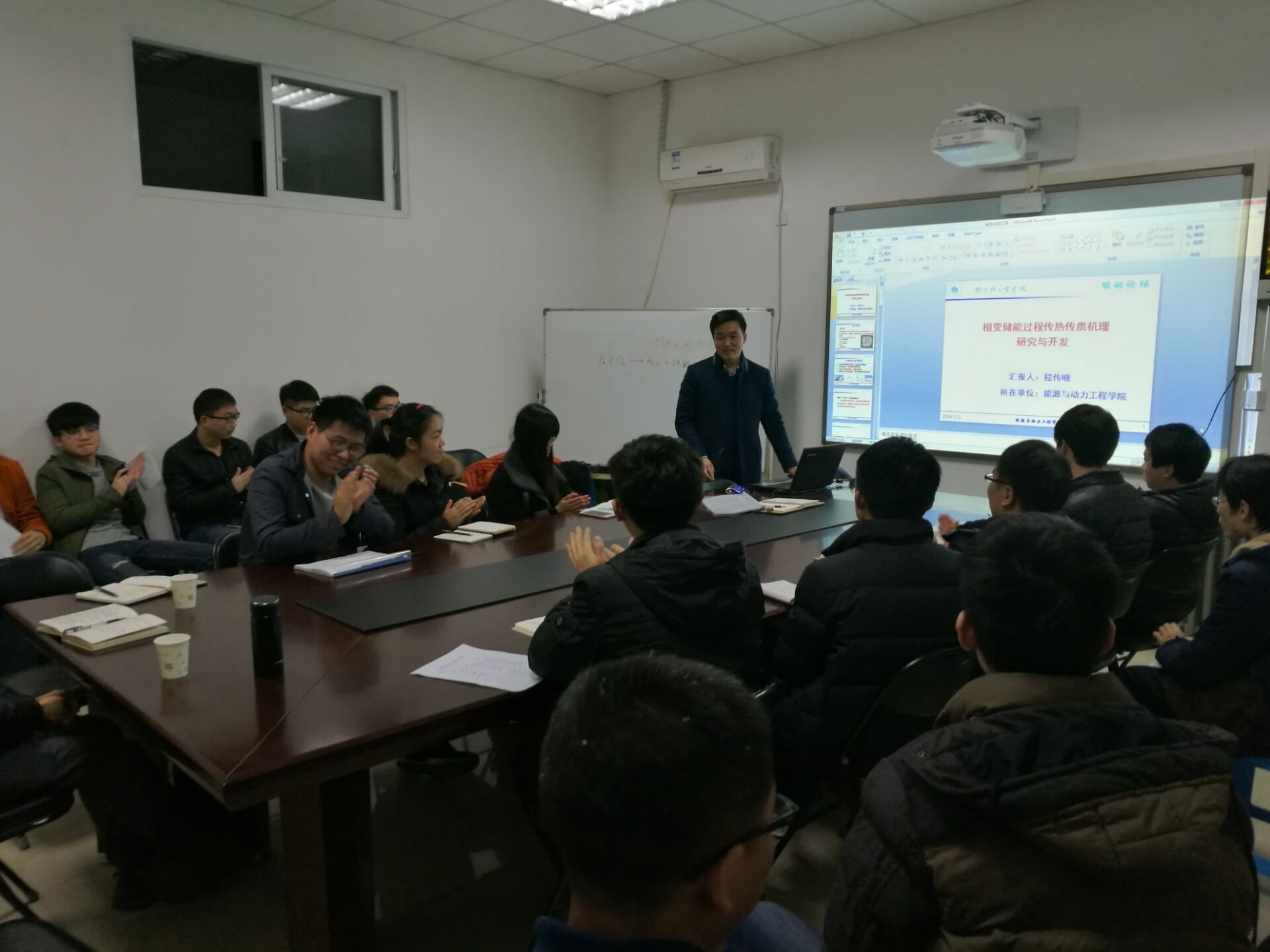 本次论坛由高志成同学主持,在介绍了本次论坛的流程和活动要求以及举办此次活动的目的和意义之后,程传晓博士首先肯定了开展能动研究生论坛的意义,随后,他就相变储能过程传热传质机理的研究与开发做了精彩汇报,并鼓励大家要不怕吃苦,善于钻研。接下来,王春煦、吕子建、李丹和郝亚萍四位同学分别从相变蓄冷材料热物性研究、基于热电过冷的家用空调器性能实验研究、微通道换热器和壳管式相变蓄热器优化研究等方面作了精彩报告。报告过程中,几位同学就各自研究课题中的创新点给出了详细的讲解。另外,2016级研究生王于曹同学与大家交流了他对于变频空调的认识。报告结束后,与会同学就报告内容展开热烈交流,同学们在两位博士的引领下积极提出问题进行探讨,在思想的碰撞中促进了研究思路的突破和创新。最后,程传晓博士对此次活动进行了总结点评并提出了宝贵的意见。