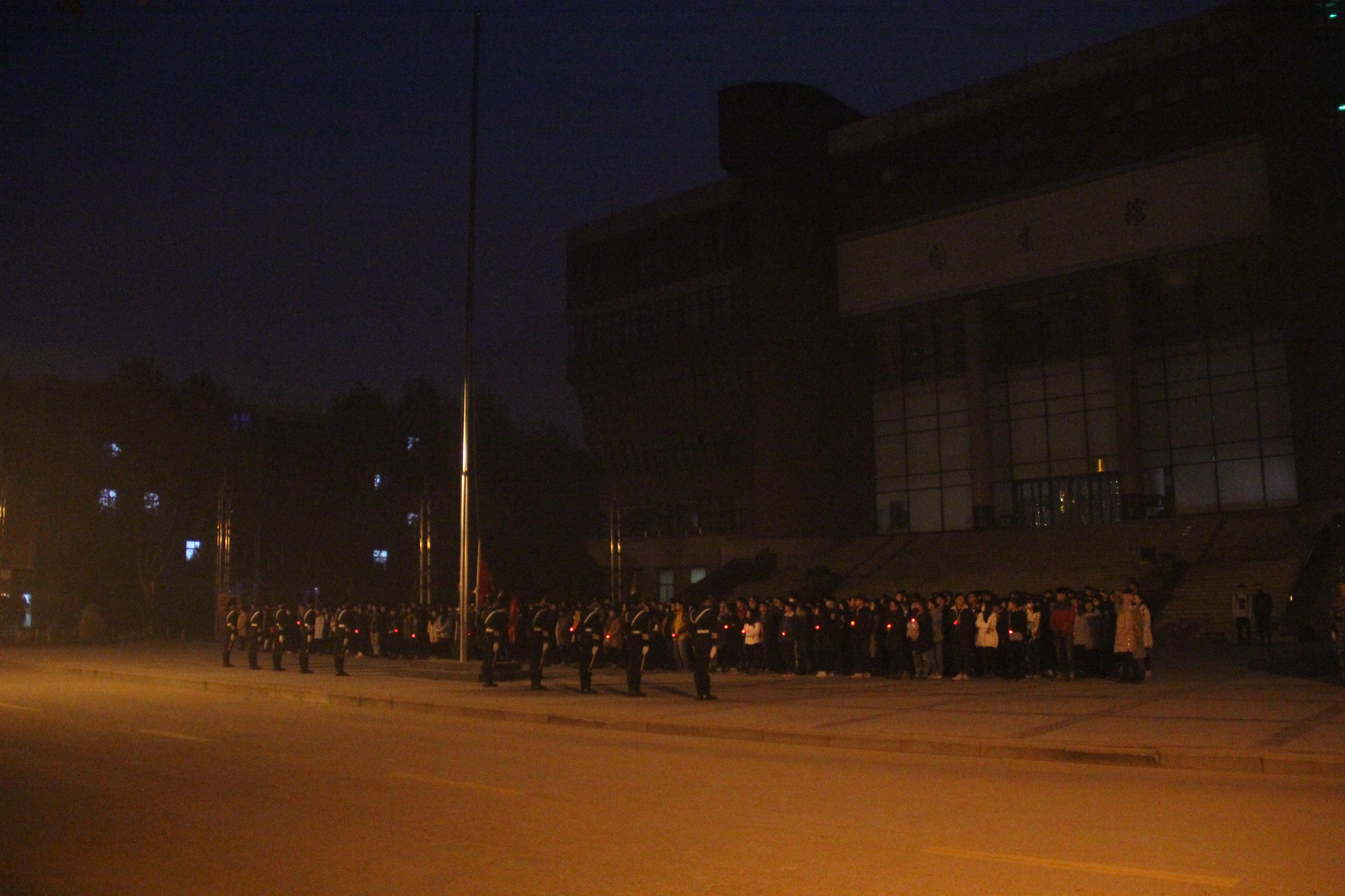 2016年12月19日早上6点30分,艺术设计学院在图书馆广场举行了以“纪念南京大屠杀”为主题的升旗仪式,艺术设计学院大一、大二全体学生参加了活动。