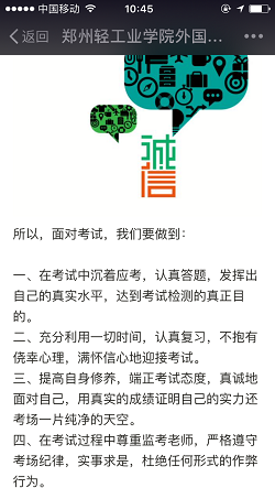 为严肃考试纪律,强化诚信考试意识,近期外国语学院广泛开展诚信考试教育活动。