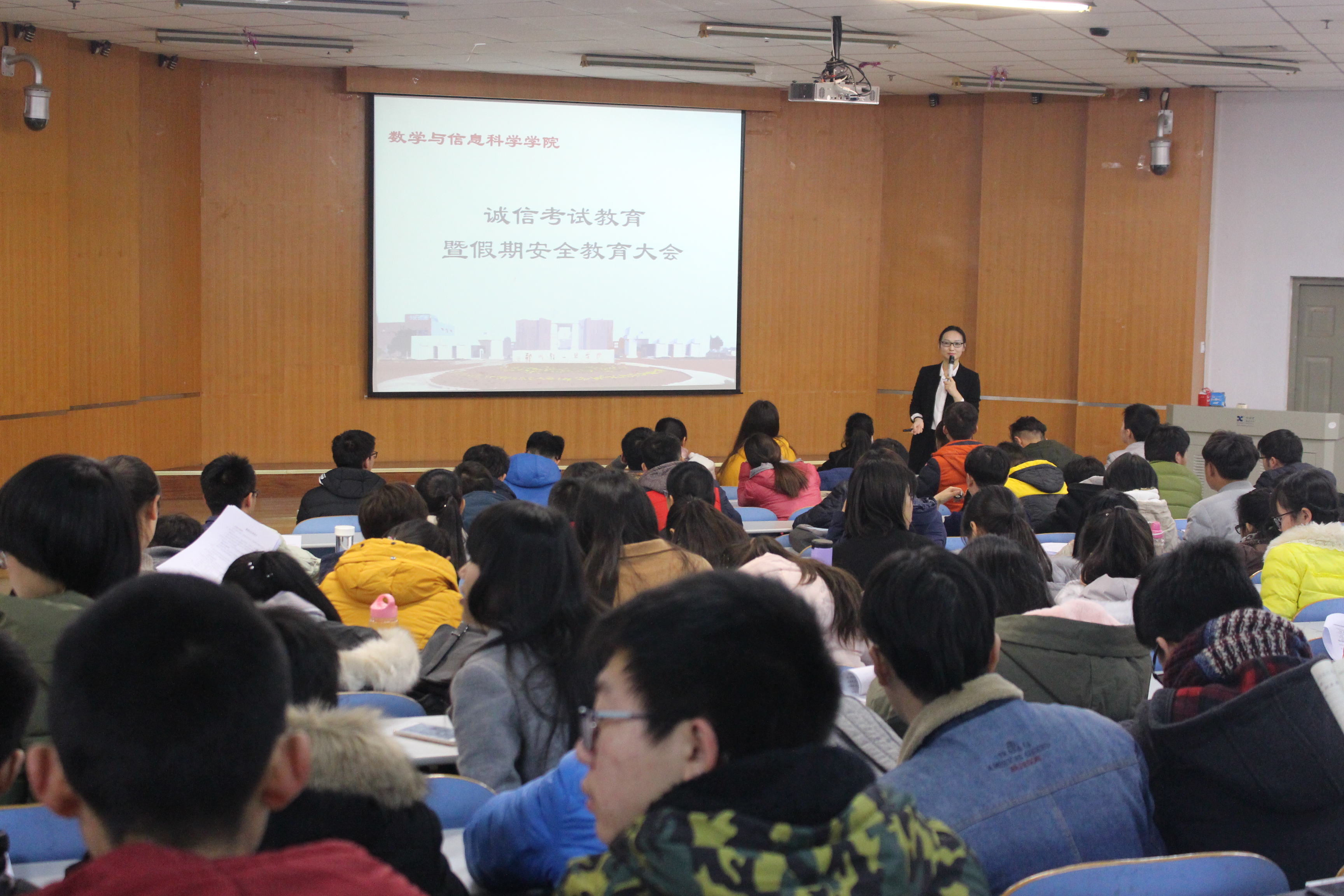 期末考试临近,为加强学生考风考纪,端正同学们的考试态度,营造良好的学风、考风,数学与信息科学学院近日全面开展考风考纪暨寒假安全教育系列会议。
