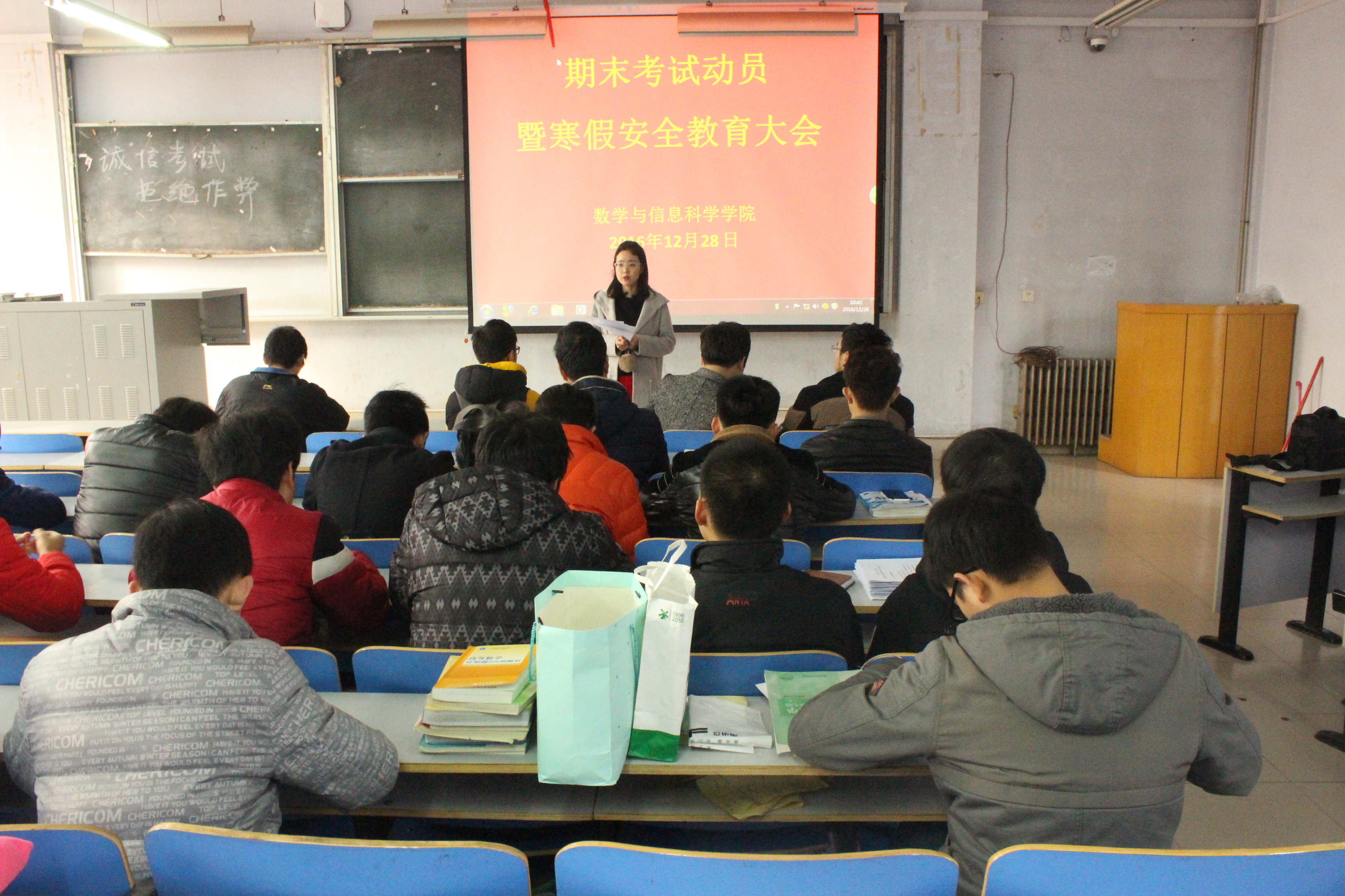 相信在全院师生的共同努力下,数学与信息科学学院全体学生一定能在期末考试中获得好成绩,并度过一个安全、充实的假期。