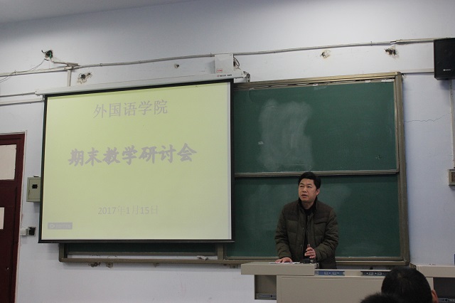 2017年1月15日上午,外国语学院在东二楼100召开了期末教学研讨会。外国语学院党政班子和全体教师参加了会议。会议由副院长孙艳娜主持。