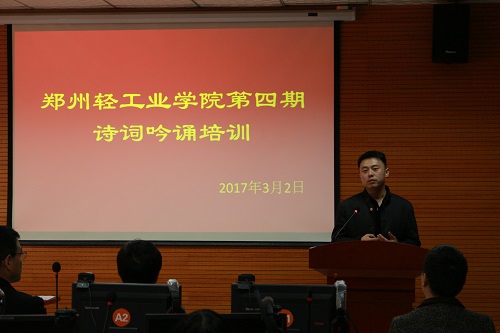 3月2日下午,我校第四期诗词吟诵培训暨吟诵社指导教师聘任仪式在东二楼301室举行。河南省博物院华夏古乐团林森、罗苏理、贺小帅、校团委书记葛勋、外国语学院书记杜红亮、副院长周麦成出席活动,外国语学院分团委书记刘振卫主持仪式。