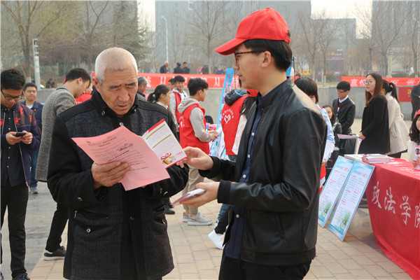 为引导大学生充分了解、学习雷锋的时代精神,增强大学生服务人民、助人为乐的社会责任感,促使大学生有效践行社会主义核心价值观。3月5日上午,政法学院志愿者们深入高新区枫阳街道办事处中心广场开展义务普法和关爱抑郁症义务宣传活动。