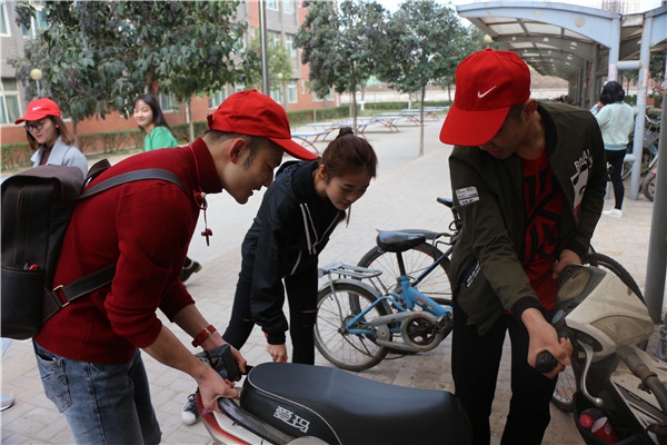 在此次的活动中一位志愿者这样说到:“尽管清扫活动是非常无聊和劳累的,但当原本凌乱不堪的车棚在经过大家一起整理后变得干净整齐,心情还是很舒畅的,自己能为轻院的美丽做出贡献而骄傲”。