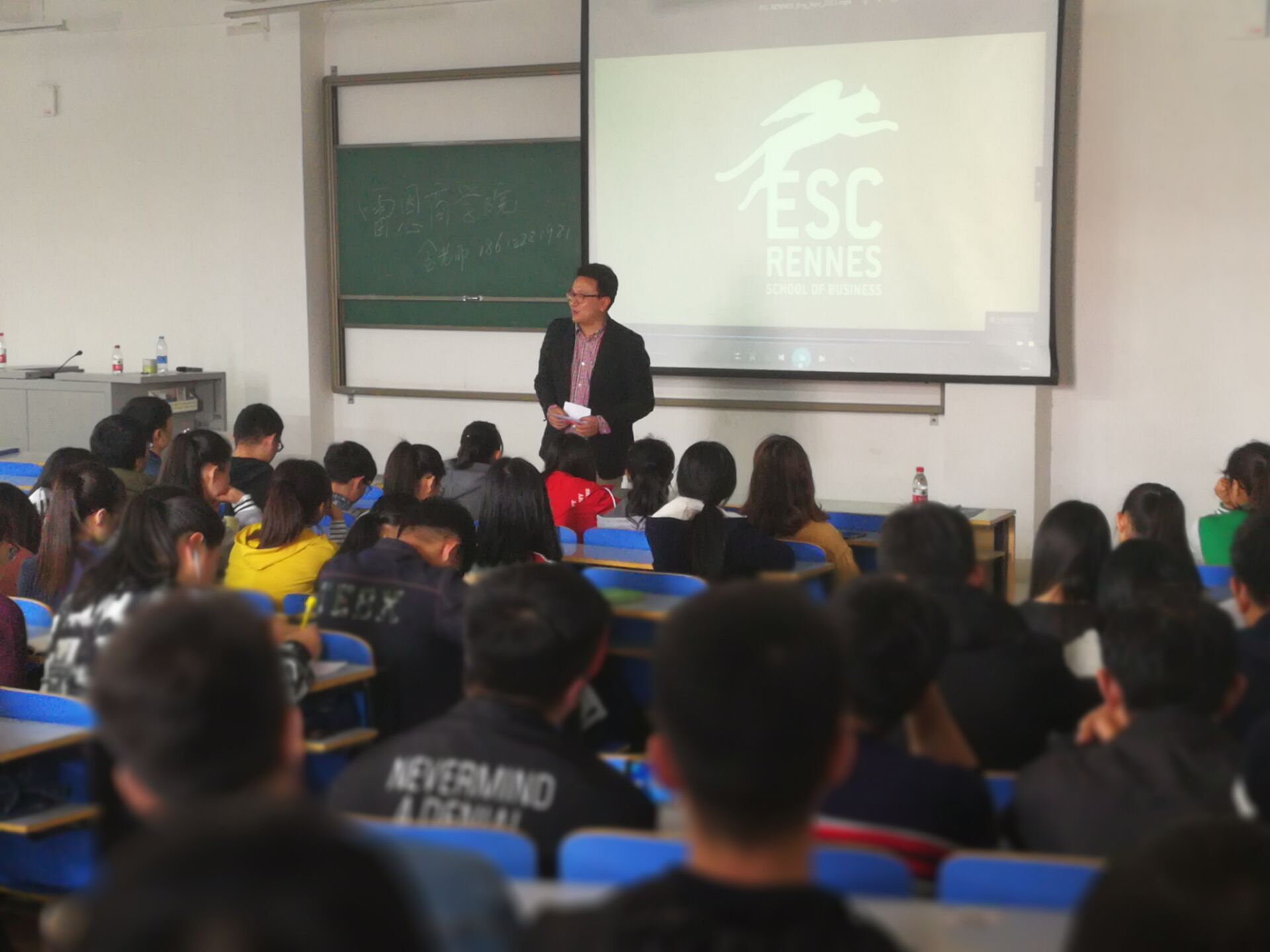 为培养具有国际视野及竞争力的创新型人才,帮助同学们了解法国雷恩商学院项目,经济与管理学院于4月6日14:30在经管楼309举办了法国雷恩商学院宣讲会。本次宣讲会由国际交流与合作处韩老师主持,雷恩商学院驻京办公室代表金老师主讲。
