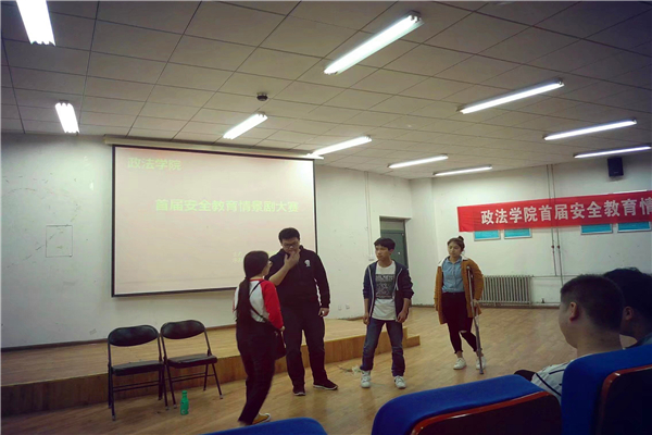 为提高学生安全防范意识,政法学院于2017年4月13日晚上19点在政法楼112举行了首届校园安全情景剧大赛,大赛通过对日常生活中安全情景的再现,旨在达到安全教育的目的。政法学院的同学们积极参加了本次大赛。