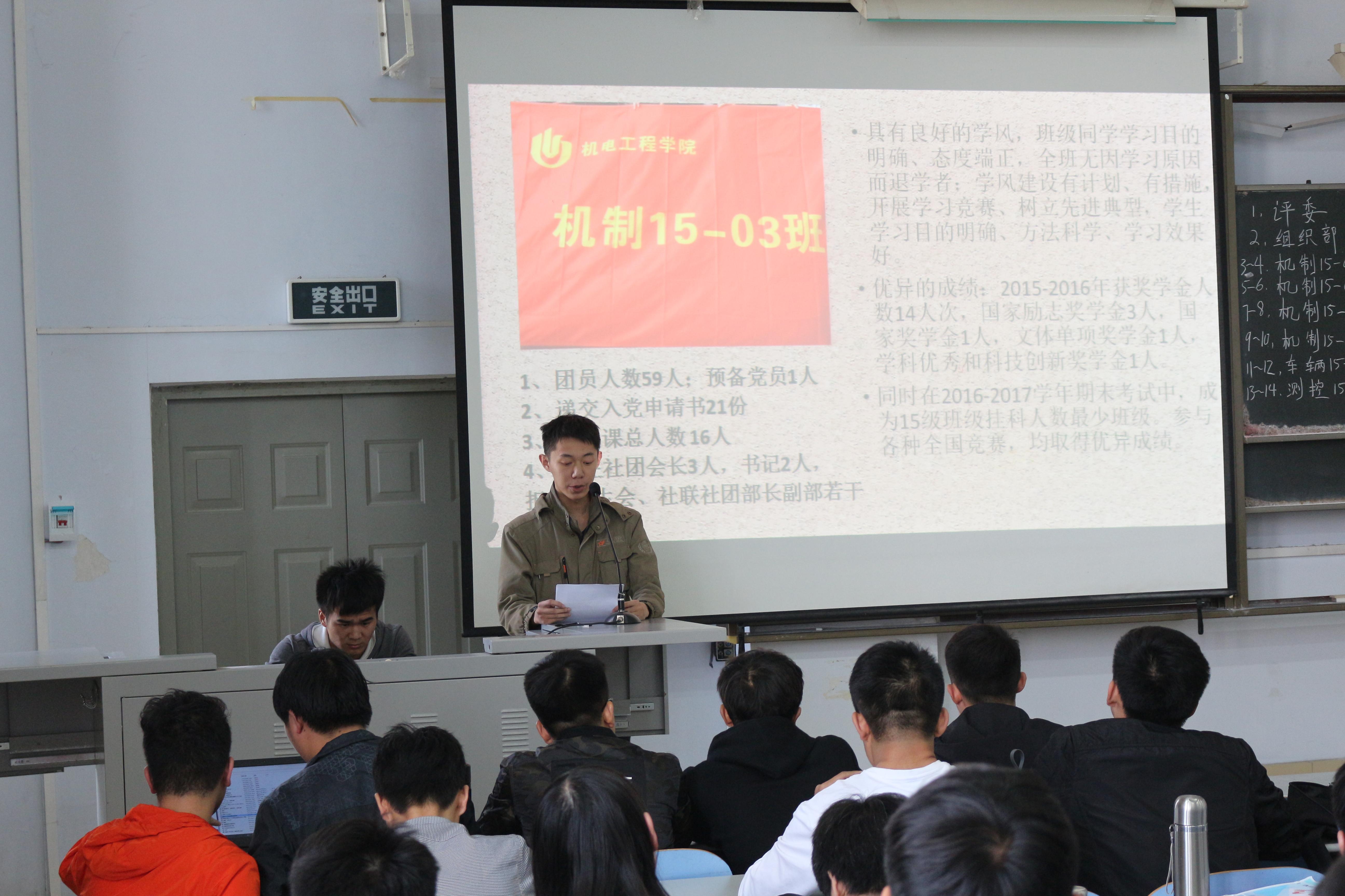 为加强各基层团支部建设,激励广大团员和团干部立足岗位,勤奋学习,努力工作,机电工程工程学院分团委于4月17日中午12点10分在教三楼301教室举办“先进团支部评选答辩会”。