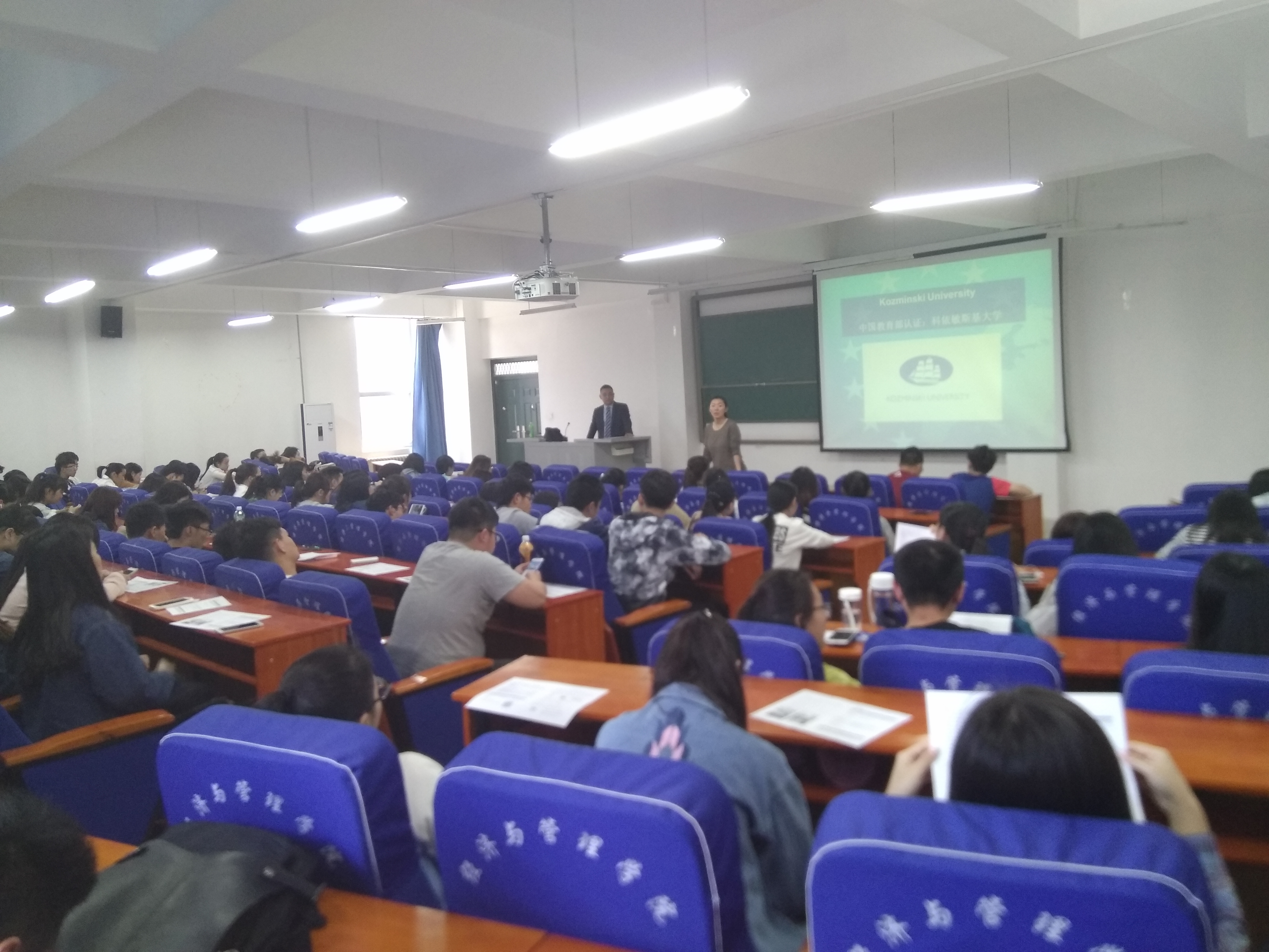 Kozminski University是欧洲顶尖的商学院,是全国仅有的几所同时被EQUIS.AACSB和AMBA认证的商学院之一,且被盛名的英国《金融时报》排行榜列为最好的全球商学院之一。宣讲会上,李老师就波兰的历史文化、地理环境及学生学习生活情况等方面向同学们作了详细介绍。接着,李老师从大学的教学体系、教学成果、课程设置、合作模式和授课费用五个方面进行阐述说明。他指出,科依敏斯基大学教学方面存在明显的优势,且在课程设置上没有国别差异,中外学生享有共同的学习资源。随后,李老师就留学手续等相关问题一一为同学们作了说明,并为同学们展示了科依敏斯基大学的优美景色,鼓励同学们认真学习,抓住国际化的交流机遇。最后,国际交流与合作处韩芳老师对项目申报要求进行了相应的补充,并强调学好英语的重要性。