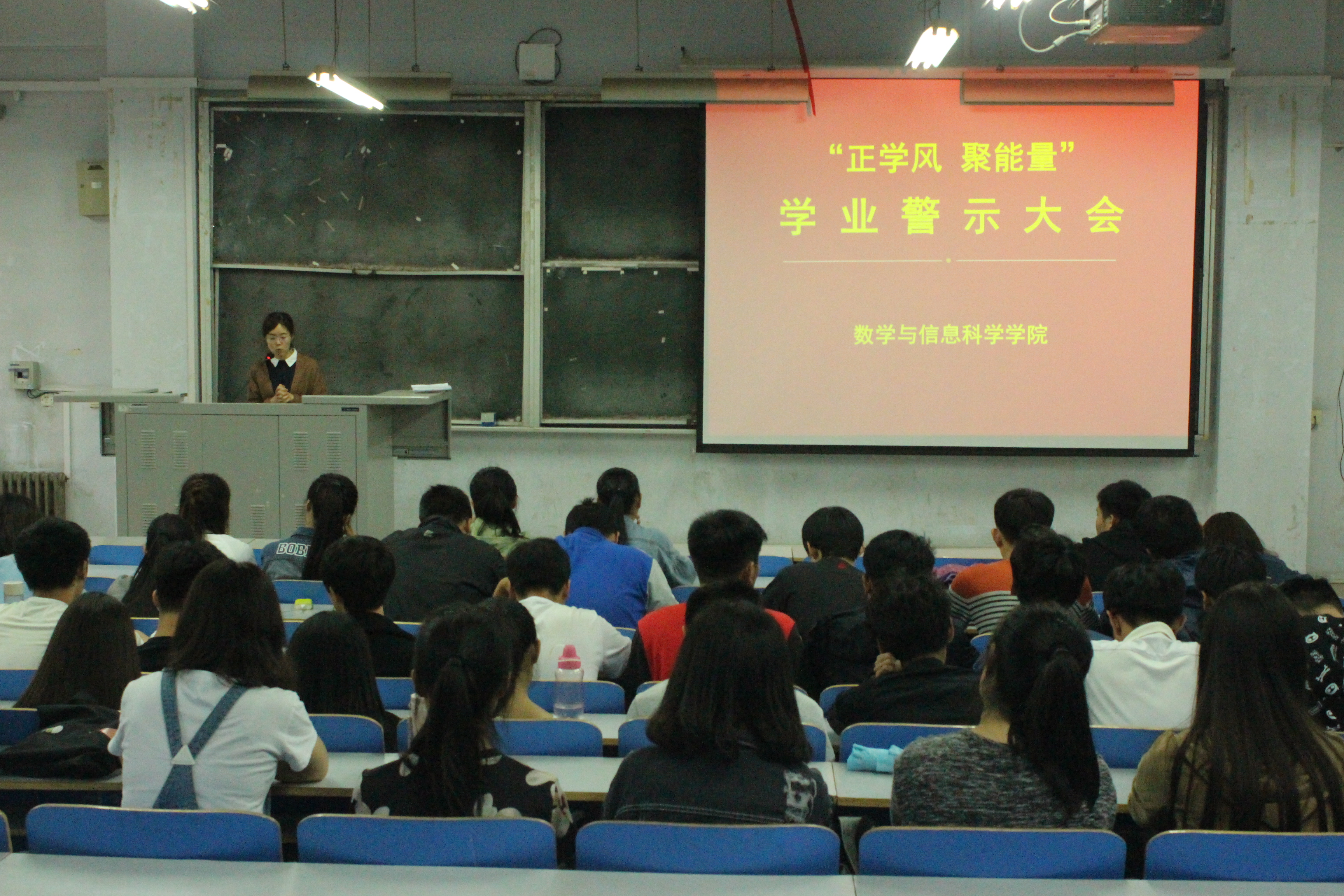为加强学风建设与管理,让学生进一步明确学习目的,尽快摆脱学业危机,顺利完成学业。5月3日下午,数学与信息科学学院在东一楼218举行了“正学风聚能量”学业警示大会。