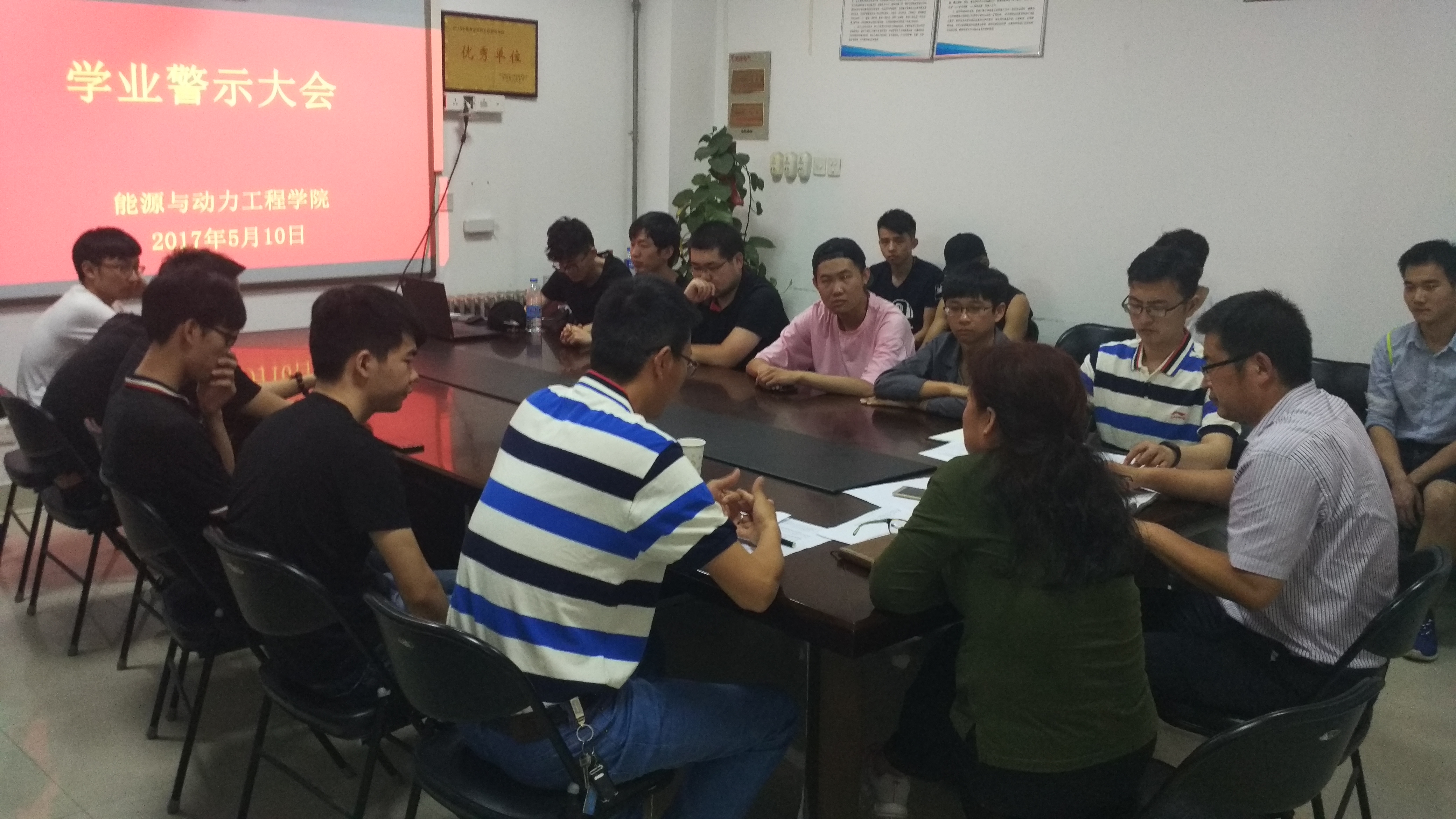 5月10日中午12:20,能源与动力工程学院在西三楼五楼学院会议室召开了“正学风 聚能量”活动之学业警示大会,学院党总支副书记书记李俊丰老师、副院长刘亚莉老师、全体辅导员和各年级学业困难成绩欠佳同学参加此次大会。