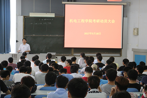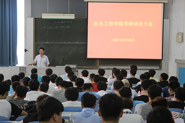 为了让同学们进一步了解考研、认识考研、明确目标、确定方向,坚定考研决心,2017年5月18日,机电工程学院在教三楼203教室召开考研动员大会。我院院长罗国富、副院长肖艳秋、各系(中心)主任及2014级学生参加大会。大会由总支副书记罗楚新主持。