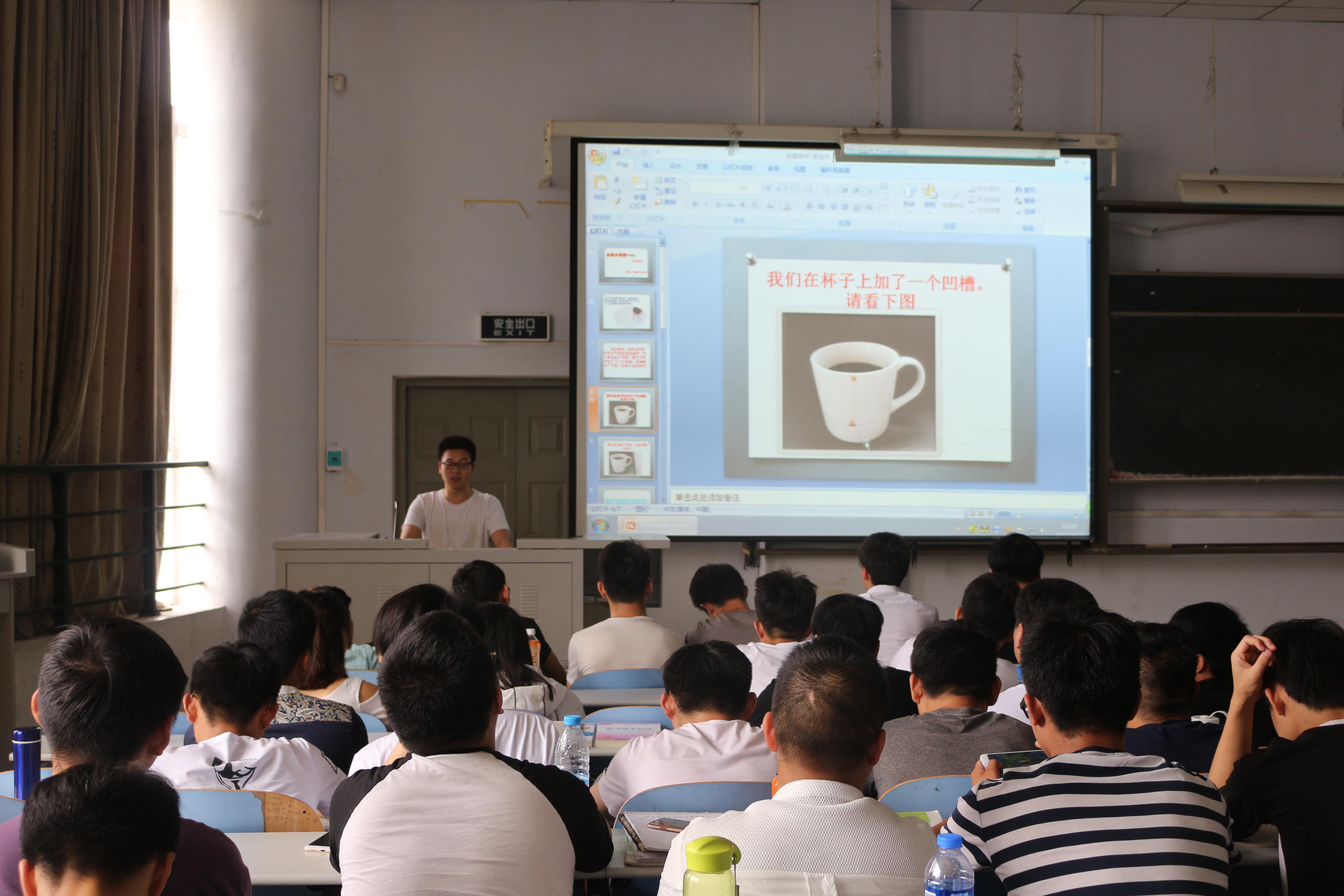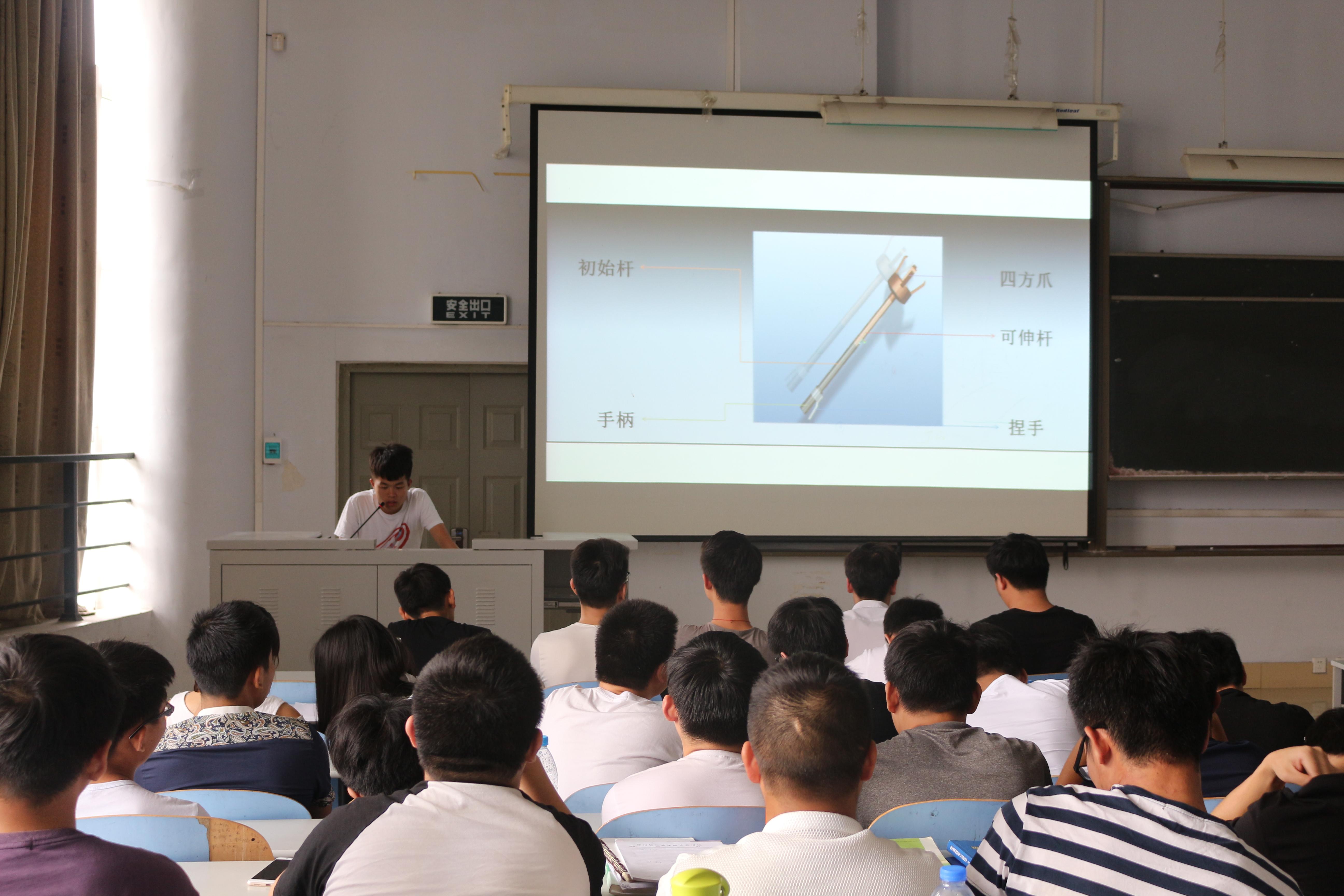 活动开始,主持人介绍了本次大赛的目的—勇于创新、勤于动手。接着,各组参赛选手按顺序轮番上台用PPT的形式向同学们展示了自己的作品。其中,有实用的新型雨伞造型,有生活中使用频繁的新颖挂钩,还有简易的摘水果杆等各种新型的“小发明”创意创新作品。选手们每次介绍完后,还有激烈的现场观众提问环节,每一次提问都是对作品升华的一种建议,选手与观众们的激烈交流,也是对作品反复讨论提升的过程,好的作品总是在无数次改进中诞生的。最后,大赛在评委们的点评中完美结束。