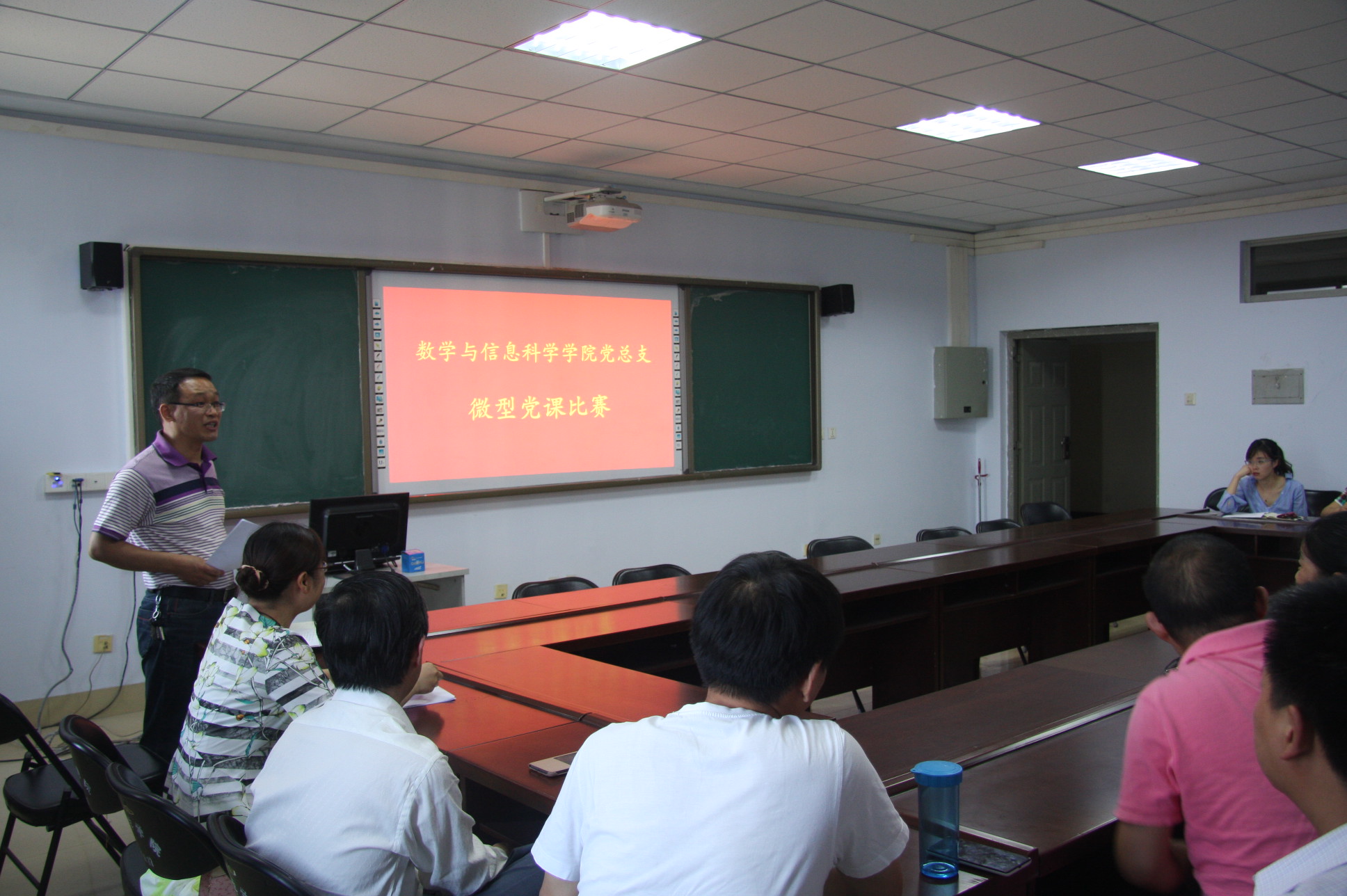 为进一步推动“两学一做”学习教育常态化、制度化,丰富党员教育形式,落实学校党委关于微型党课系列活动的精神,525日下午,数学与信息科学学院在教三楼1000会议室成功举办了微型党课大赛。经各党支部推选的5名教工党员参加了比赛,全体党员观看了比赛。
