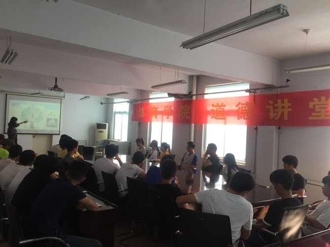 为进一步深化精神文明创建活动,推动“知行合一”的道德实践,5月18日下午,体育学院举办的“为自己的品牌代言”主题道德讲堂在体育馆三楼会议室开讲,本次道德讲堂邀请了体育学院邱廉洁老师主讲,体育学院党总支书记郗冰杰、分团委书记石庆福、学工办主任李羚玮和全体学生干部参加了本次道德讲堂。