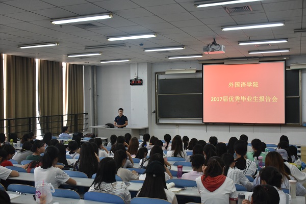 6月1日下午,外国语学院在教三楼204召开2017届优秀毕业生报告会。2017届5位优秀毕业生代表及2016级全体学生参加本次报告会。