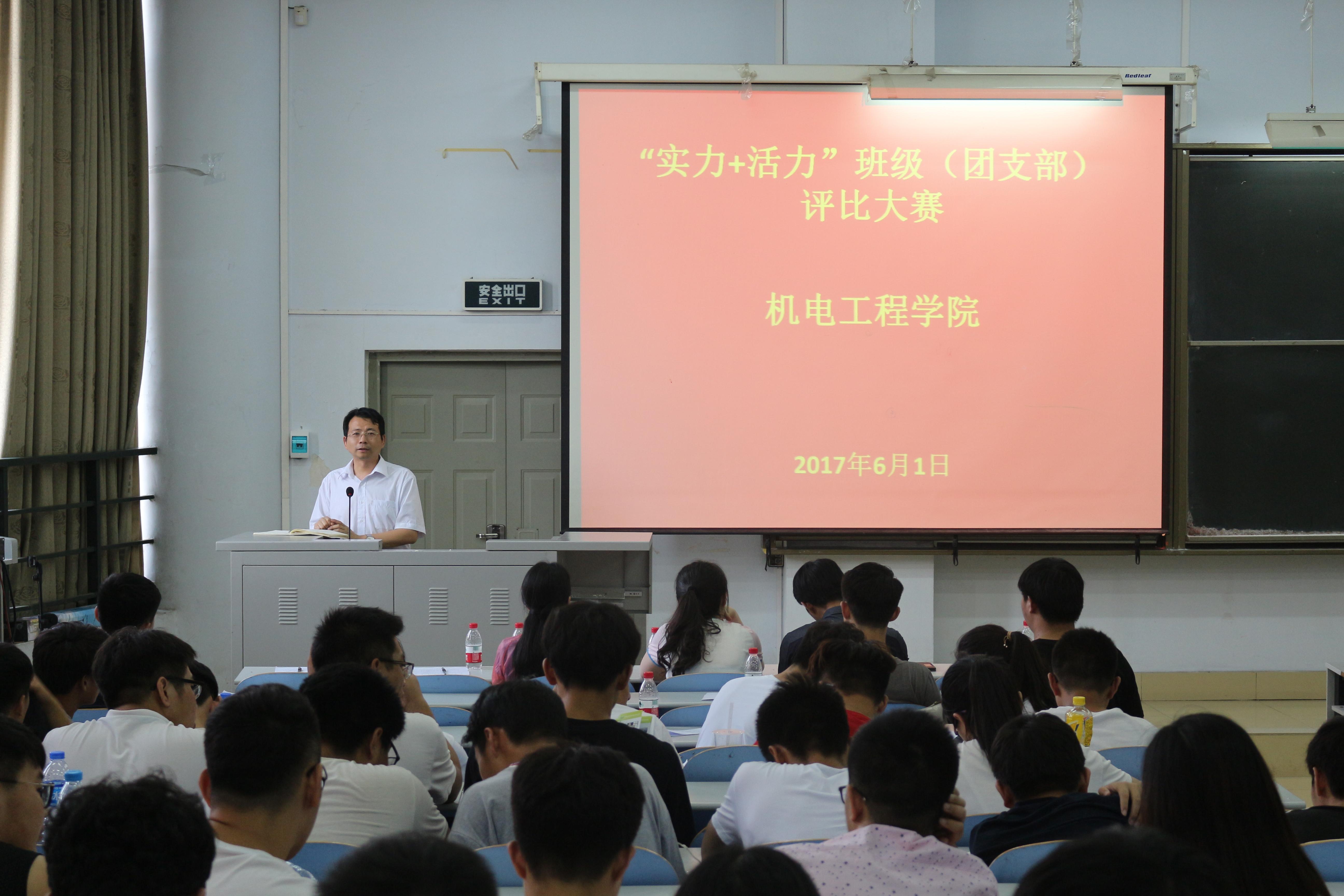 为充分培养班级学生团队合作意识,丰富大家课余生活,增加班级凝聚力、亲和力、战斗力。6月1日下午3点,机电工程学院在东风校区教三楼301举办 “活力+实力”班级评比大赛活动。机电工程学院党总支副书记罗楚新老师、各班级辅导员及各年级班级代表参加了此次活动。