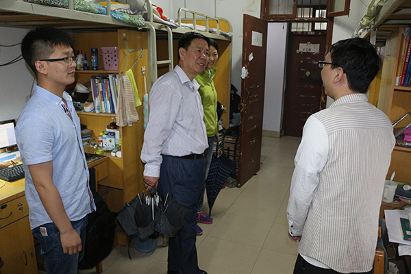 为了更好地服务学生,确保做好毕业生文明离校、安全离校工作,2017年6月5日上午,机电工程学院院长罗国富、党总支书记蒋玮、副书记罗楚新及辅导员深入毕业班学生宿舍,了解毕业生思想动态,向广大毕业生送去了学院的关怀。