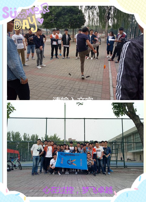 5月25日,装备卓越15-01班在足球场上开展了“心在过控,梦飞卓越”心理素质提升项目。该项目立足于大学生实际情况,切实从大学生学习生活中发现问题,着力提升大学生心理健康水平。活动由简单且富有技巧和挑战性的游戏组成,使同学在游戏中增进感情,在游戏中提升自我,在游戏中领悟到集体的温暖,在游戏中明白团结的魅力。