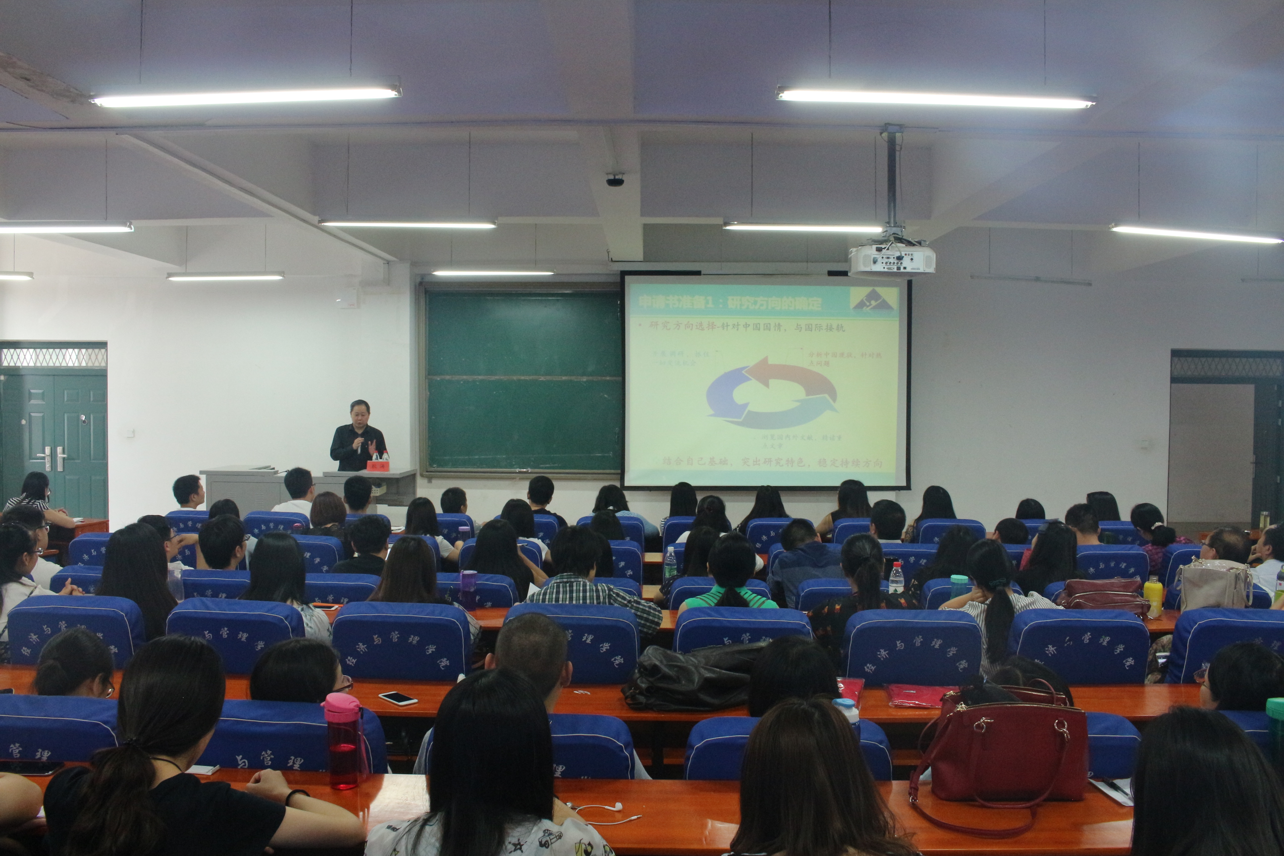 本次学术讲座由经管学院刘珂院长主持,耿教授通过自身在循环经济、气候变化、低碳经济等方面的研究经验和在国际顶级学术刊物《Science》、《Nature》投稿及发表过程,结合上海交通大学循环经济学科建设经验和与国际接轨的过程,讨论了大学在科研管理、博士点建设和学科建设中的一些关键问题。另外,作为自然科学基金委的资深会审专家,耿老师还从国家自然科学基金的研究方向的准备、申请书的撰写、后评估准备以及研究问题的一般过程等问题,从会审专家的角度进行分析讲解,强调科学问题的提出要接地气,要重视前期成果等问题。