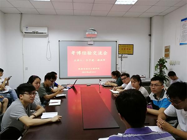 为激发同学们的学习热情,加深对考博的了解,帮助同学们更好地规划考博学习计划,2017年6月12日晚19:00,能源与动力工程学院在西三楼五楼会议室举办了考博经验交流会,分团委副书记王耿华老师和全体研究生参加了本次会议。