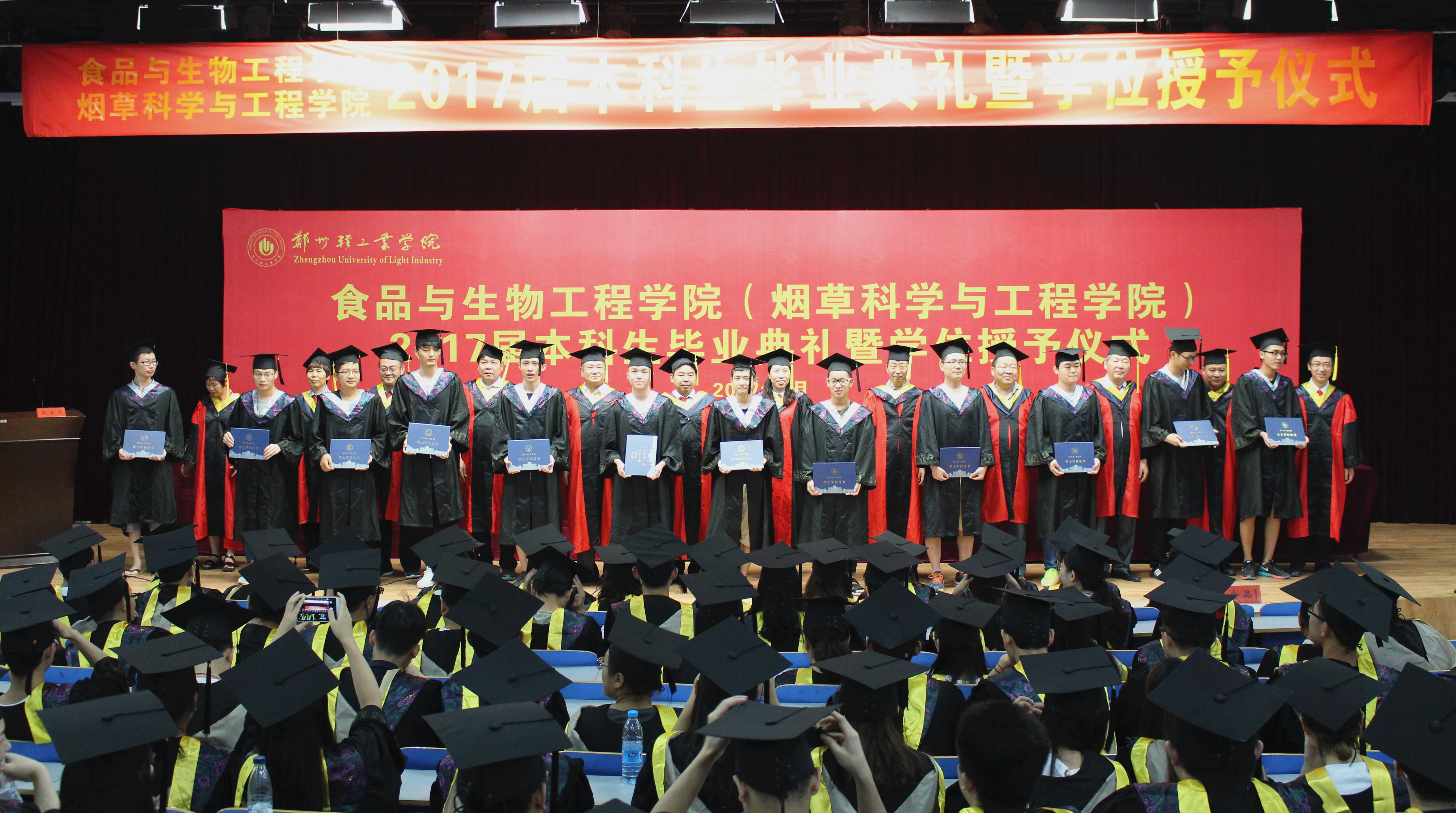 2017年6月15日,食品与生物工程学院(烟草科学与工程学院)在科学校区大学生活动中心208举行2017届本科生毕业典礼暨学位授予仪式。学院领导、老师代表及2017届毕业生参加了典礼。典礼由副院长姚二民教授主持。