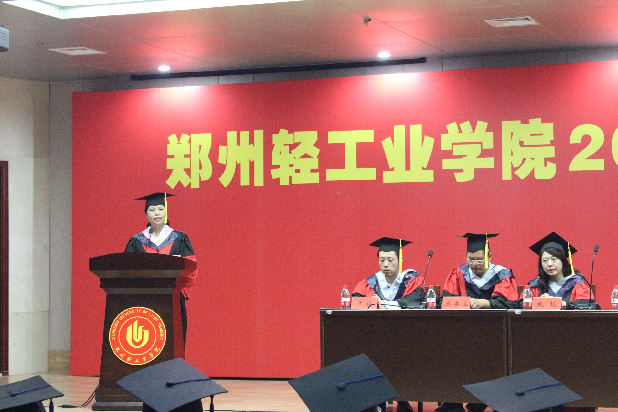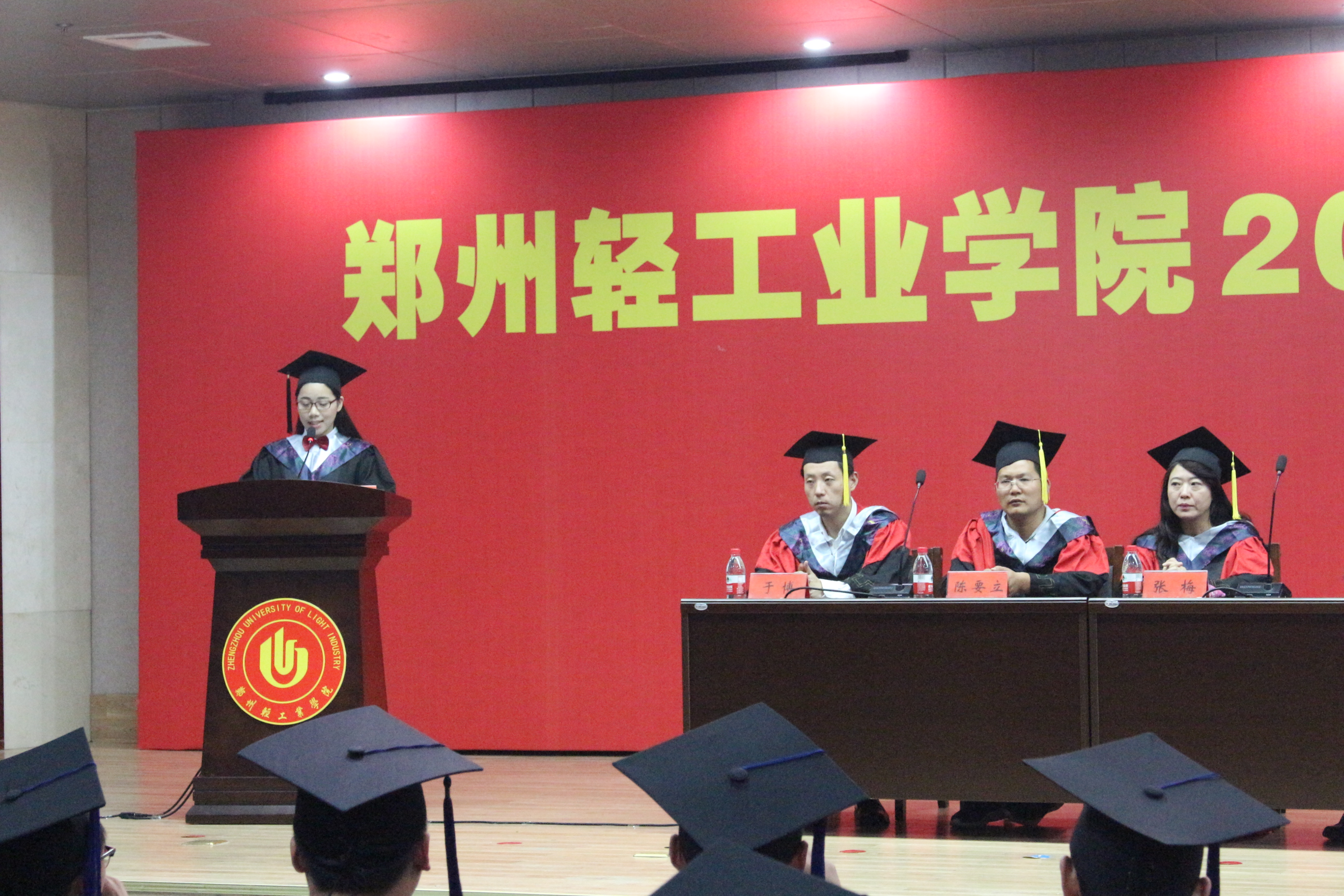 学位授予仪式在雄壮的国歌声中拉开帷幕。经济与管理学院副院长符加林宣读了《关于授予郭腾飞等34名2017届毕业研究生硕士学位的决定》,副院长仝新顺宣读了《关于授予彭涛等568名2017届本科毕业生学士学位的决定》。学院共有34名2017届毕业研究生获硕士学位,其中管理学硕士8人,工程硕士1人,工商管理硕士(MBA)2人,会计专硕(MPACC)23人;学院共有568名2017届本科毕业生获学士学位,其中管理学学士472名,经济学学士96名。国家奖学金获得者、河南省优秀毕业生、校十佳毕业生买彤彤代表毕业生发言,她分享了自己大学四年不断成长的心路历程,大学的朝夕相处、同窗情谊、耕耘收获,并表示将牢记领导和老师们的殷切期望,不忘校训,以饱满的热情和昂扬的斗志投身社会,服务社会,奉献青春,实现价值,感恩母校。