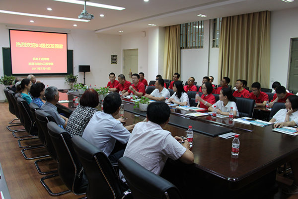 2017年7月15日,我校机电工程学院和能源与动力工程学院93级校友回到阔别已久的母校,庆祝毕业二十周年,追忆同窗往事,畅谈人生经历,上午九点交流会在机电工程学院西三楼215会议室正式开始。我校吕彦力副校长、王新杰副校长、当年的班主任老师、辅导员老师、专业课教师代表出席了此次交流会。交流会由机电工程学院党总支书记蒋玮主持。