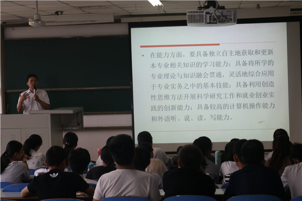在专业介绍和学业职业生涯教育活动中,政法学院各系主任、专业老师从专业的特点、师资力量、发展前景、就业方向等方面简明扼要地介绍了所教专业,并就新生们关心的问题一一进行了详细的解答。在学生手册和安全教育活动中,新生辅导员张宏英老师针对学籍管理规定、学生违纪处分管理规定等为同学们做了详细的解释。